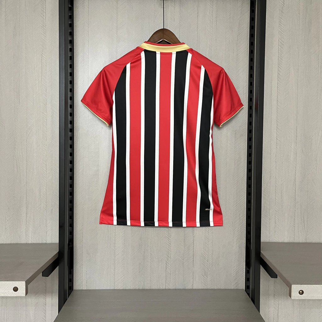 Essa é a nova camisa feminina II do São Paulo para temporada 2025/2026, esse modelo possui as cores predominantementes Vermelho, Preto e Branco.